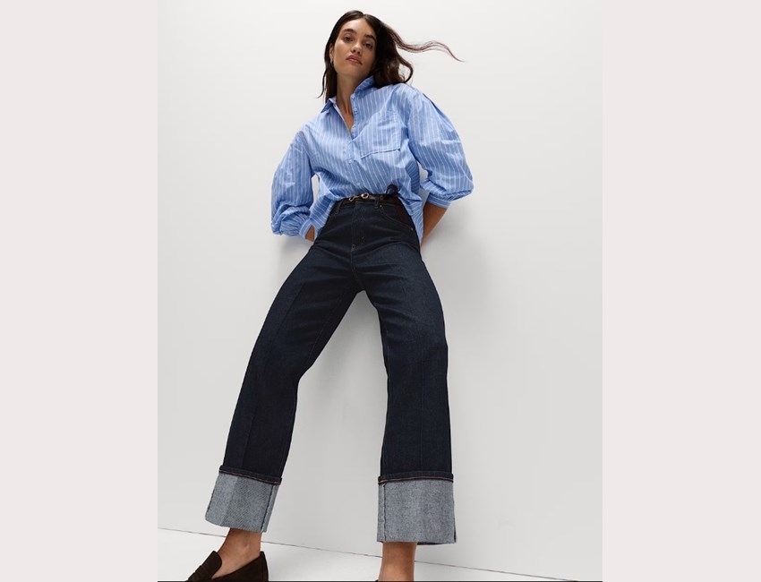 Τζιν με φαρδιά μπατζάκια και ρεβέρ