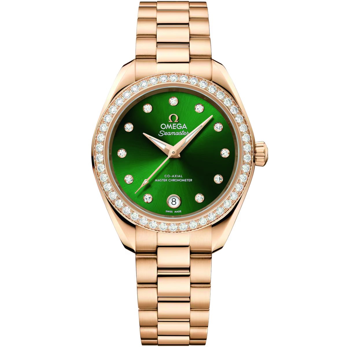 Ρολόι OMEGA «Seamaster Aqua Terra» 30 mm, από χρυσό MoonshineΤΜ με πράσινο καντράν και διαμάντια.
