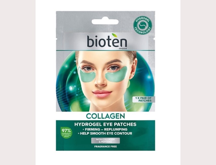 Collagen Hydrogel Eye Patches, Bioten: Με 97% συστατικά φυσικής προέλευσης, είναι εμπλουτισμένα με κολλαγόνο & πεπτίδια, στοιχεία όπου συμβάλουν δραστικά στην ενδυνάμωση, στην επαναφορά της ελαστικότητας του δέρματος και στη λείανση του περιγράμματος των ματιών κάνοντας το δέρμα να φαίνεται πιο σφριγηλό και πιο γεμάτο.