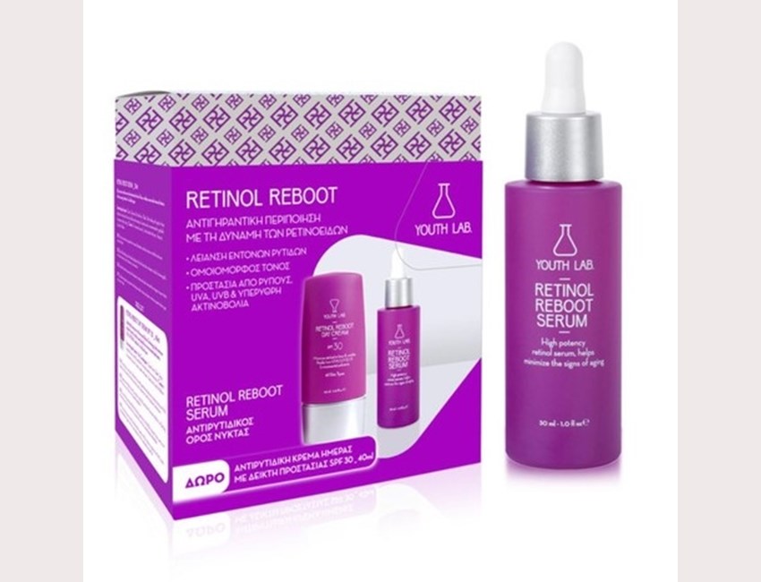 Σετ με αντιρυτιδική κρέμα ημέρας SPF30 Promo Retinol Reboot Day Cream και ορό προσώπου, Retinol Reeboot Serum, Youth Lab.
