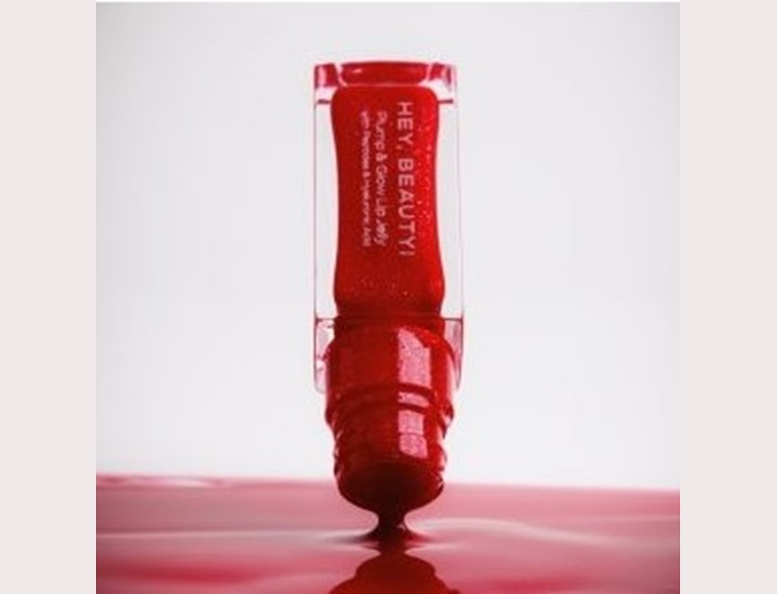 Θρεπτικό λιπ γκλος για plump εφέ, με πεπτίδια, έλαια, υαλουρονικό οξύ και γεύση βανίλιας, HEY BEAUTY! Plump & Glow Lip Jelly, Red Velvet (hey-beauty.gr).