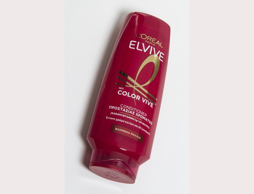 Κοντίσιονερ προστασίας χρώματος για βαμμένα μαλλιά με καθαρή βιταμίνη Cg + UV φίλτρα, Elvive Color Vive της L'ORÉAL PARIS.