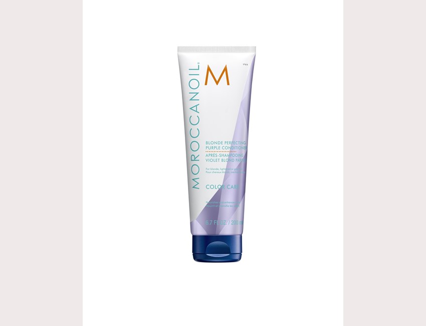 Κοντίσιονερ με βιολετί χρωστικές που δρα κατά των κίτρινων και πορτοκαλί τόνων στα ξανθά, ξανοιγμένα καστανά και γκρίζα μαλλιά, Blonde Perfecting Purple Conditioner της MOROCCANOIL.
