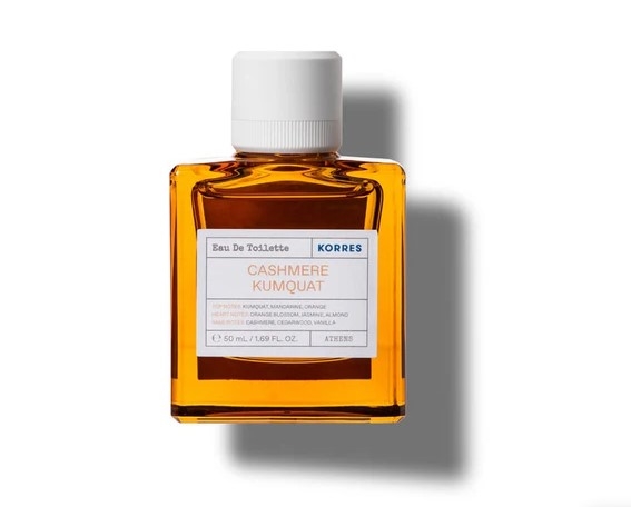Cashmere Kumquat Eau De Toilette, Korres: Με νότες από άνθη πορτοκαλιάς και βανίλιας, γλυκόπικρα εσπεριδοειδή, η οξύτητα του λεμονιού και η γήινη φρεσκάδα του κέδρου, συναντιούνται σε φόντο εμπνευσμένο από τον αισθησιασμό του πολυτελούς κασμίρ.