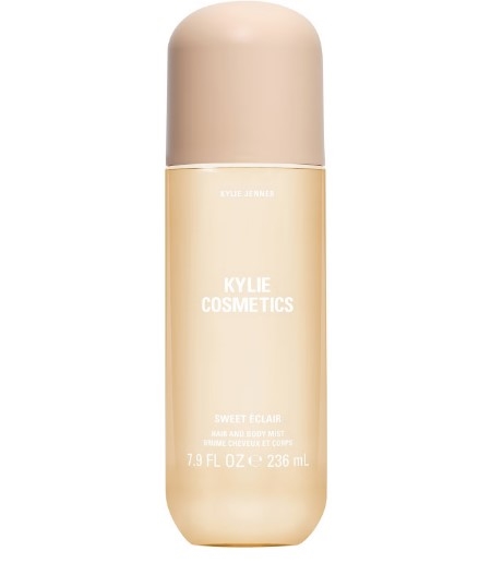 Αρωματικό σπρέι για σώμα και μαλλιά KYLIE COSMETICS Sweet Éclair Hair & Body Mist με νότες αφράτης σαντιγί, σοκολάτα και πέταλα φρέζιας (hondoscenter.com).